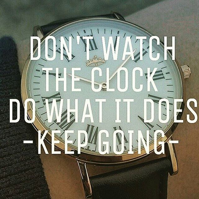 Dont watch the clock. The clock keeps moving regardless. Do what it does. When we are energised upbeat or occupied with doing our work the time will pass on rapidly. Do what it does. I know this quote might feel kind of lame but still. You cant get angry and frustrated if you dont see the results you were hoping to achieve but you cant give up keep pushing that rock up the hill.