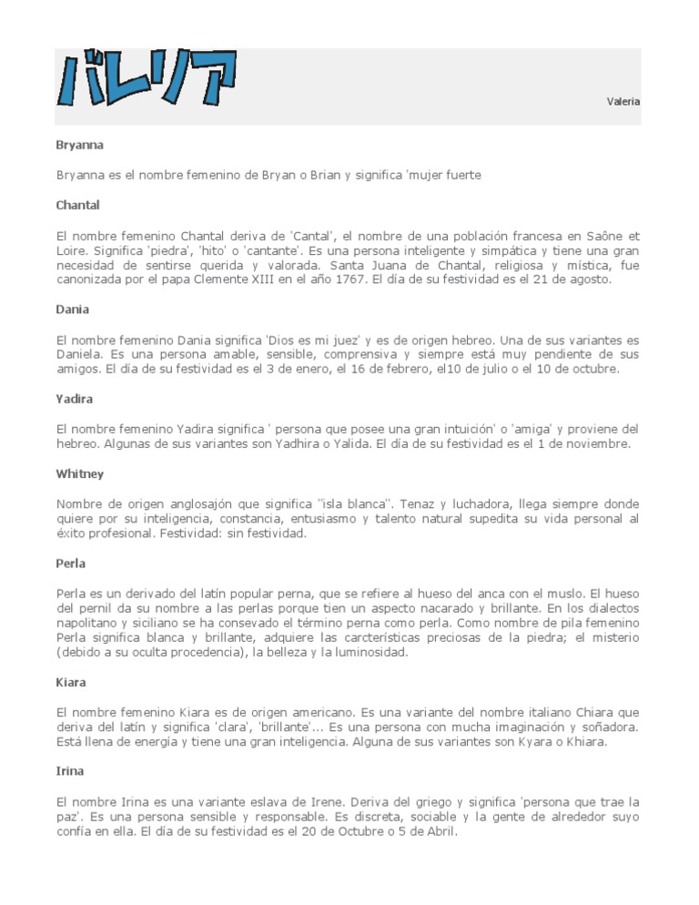 Encuentra el significado y origen de nombres para mujer además apodos variantes diminutivos entre otros detalles por cada nombre. Elige uno de los nombres de niña más populares de esta lista. Seguro que se convierte en el preferido de más de una familia.